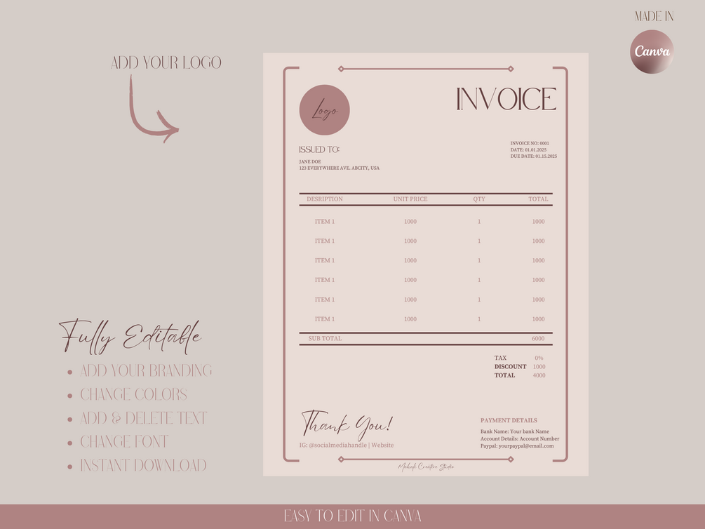 Easy Customization: Fully editable in Canva—change colors, fonts, and layout to match your unique brand style.