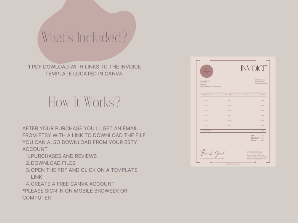 Editable Invoice Template (Access via Canva link)